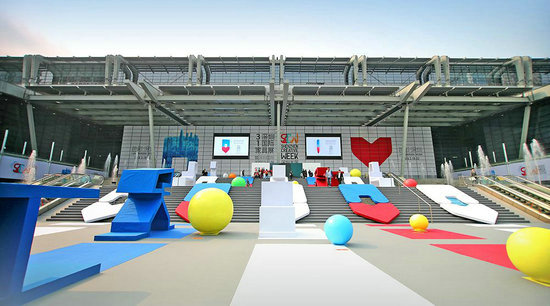 深圳會展中心北廣場設計由意大利設計師團隊傾力打造,圍繞著“設計之路”的主題,設計師將彩色設計之路、巨型家具模型和多彩球三個元素融會貫通于開放式的波浪造型中。該設計寓意深圳國際家具展將引導著整個家具行業(yè)的設計與創(chuàng)新,以更包容的心態(tài)接納來自世界各地的設計創(chuàng)意。參觀者可以在這些不斷延伸的彩色之路暢游,穿梭于家具模型與家具展形象物之間,在進入展覽館的過程中,體會到設計之美。