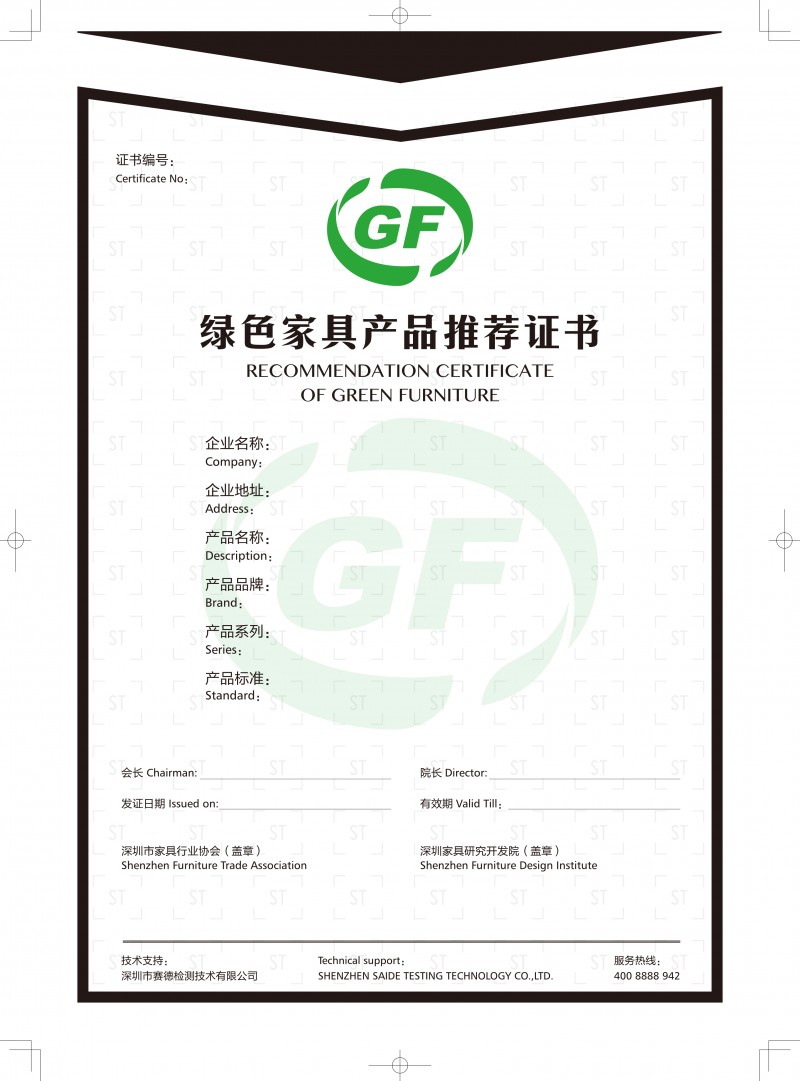 2014年,在深圳市委市政府支持下,由中國家具協(xié)會發(fā)起,深圳市家具行業(yè)協(xié)會承辦的“中國綠色家具優(yōu)品”評定工作啟動,其作為中國家具行業(yè)內(nèi)的對優(yōu)質(zhì)環(huán)保家具產(chǎn)品的最高等級認定,為消費者購買可靠安全優(yōu)質(zhì)家具產(chǎn)品所制定的專屬消費標簽,致力于以“深圳質(zhì)量”帶動中國家具行業(yè)的全面品質(zhì)提升,從而塑造中國家具崇高形象。