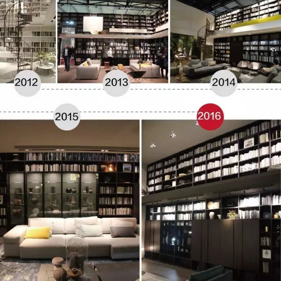 ▲2012-2016年LEMA的Selecta系列書柜,采用同款產(chǎn)品的不同涂裝效果。