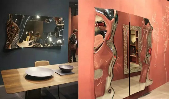 玻璃家具的殿堂級(jí)品牌FIAM在展示其常規(guī)玻璃家具的基礎(chǔ)上,為了彰顯自身極致的玻璃制作工藝,以幾面高難度的鏡子驚艷了觀眾。
