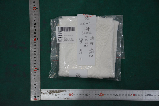⑤紡織品606-7:數(shù)量1塊,在10卷抽樣基數(shù)上抽取,型號(hào)規(guī)格300×600(mm),生產(chǎn)日期/批號(hào)151113,生產(chǎn)企業(yè)為美信。