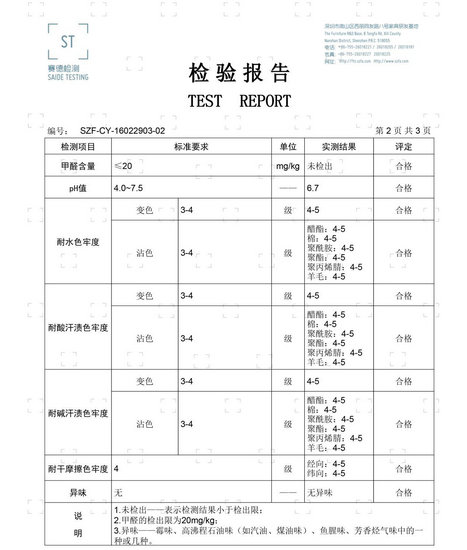 ②紡織品YM-13:異味、pH值、耐水色牢度、耐酸汗?jié)n色牢度、耐堿汗?jié)n色牢度、耐干摩擦色牢度、甲醛含量。