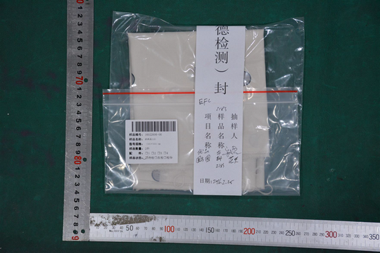 ⑦紡織品2059:數(shù)量2塊,在10卷抽樣基數(shù)上抽取,型號(hào)規(guī)格300×300(mm),生產(chǎn)日期/批號(hào)151222。