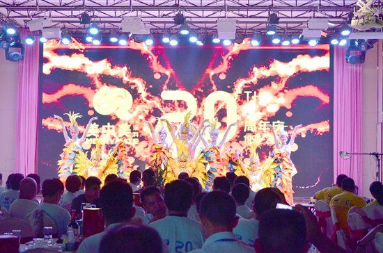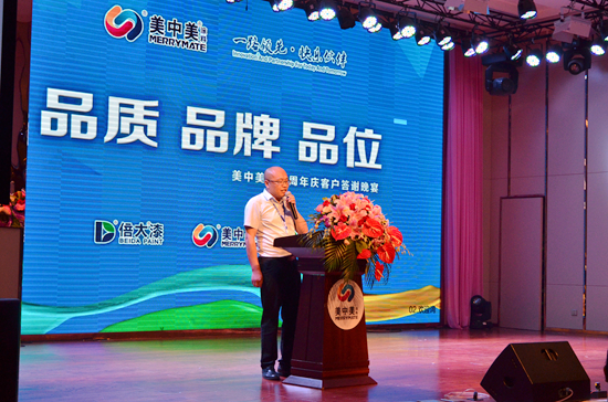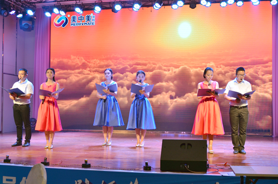 17時30分,美中美二十周年慶客戶答謝晚宴暨新品發(fā)布會在璀璨神秘的太陽舞中拉開帷幕?;顒诱介_始,總經(jīng)理助理楊助致歡迎辭,回顧美中美從無到有發(fā)展歷程,闡述面臨當(dāng)前新的環(huán)境、新的常態(tài)等嚴(yán)峻挑戰(zhàn),美中美人將始終堅持“一路領(lǐng)先•快樂伙伴”的企業(yè)經(jīng)營理念,全力踐行“品質(zhì)、品牌、品位”的企業(yè)精神,不斷自我超越、主動擔(dān)當(dāng)、空杯心態(tài)、高度協(xié)作,以打造百年品牌的愿景做各位快樂伙伴的伴隨者,共同推動行業(yè)改造升級。