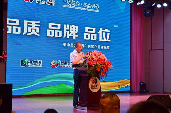 回首過去,共同見證美中美成長,展望未來,結(jié)合公司三品文化——“品質(zhì) 品牌 品位”主題,公司副總經(jīng)理周總帶來《品質(zhì) 品牌 品位——美中美未來之美》主題演講。周總分享美中美一路走來,在各位快樂伙伴協(xié)同下不斷蛻變與成長。分析當(dāng)前市場經(jīng)濟形勢,電商崛起、跨界競爭、產(chǎn)能過剩、人口紅利、管理粗放以及消費趨勢改變等諸多挑戰(zhàn),周總提出“變、化、進”的思維與行動方針,剖析美中美“品質(zhì) 品牌 品位”三品文化精髓。在品質(zhì)方面,將更加強調(diào)職業(yè)化團隊是基礎(chǔ),企業(yè)內(nèi)部努力實現(xiàn)由團隊向組織的過渡;在產(chǎn)品上美中美將訴求回歸工業(yè)本身,以工匠之心打造產(chǎn)品生態(tài)鏈。在品牌方面,將更加專注于由品牌符號到品牌精神的實現(xiàn),美中美作為中國家居漆潮流領(lǐng)先品牌,將會通過全國平臺的布局,打造戰(zhàn)略合作客戶,提供增值服務(wù),強化渠道下沉,實現(xiàn)營銷精細(xì)化,以此更加貼近全國市場與目標(biāo)客戶。在品位方面,美中美人將會不斷地自我超越,主動擔(dān)當(dāng)社會責(zé)任,共同推動行業(yè)改造升級,實現(xiàn)“天更藍(lán)、地更綠、水更凈”的綠色家居理念,全面推廣水性家居漆與凈味家居漆在行業(yè)的應(yīng)用。同時,美中美將通過品牌塑造、市場拓展、產(chǎn)品生態(tài)鏈的建立、全國平臺布局等有力措施實現(xiàn)可持續(xù)發(fā)展。周總在演講最后強調(diào),面對當(dāng)前嚴(yán)峻市場形勢,美中美將會與各位快樂伙伴協(xié)作一致、進中求穩(wěn)、風(fēng)險防控、精耕細(xì)作,風(fēng)雨同舟砥礪前行,共同締造自然、和諧、共贏、共享的美中美平臺。