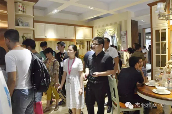 開(kāi)幕首日,眾多經(jīng)銷商慕名而來(lái)。許多經(jīng)銷商在參觀簡(jiǎn)歐家具“杰昵雅”展位時(shí)表達(dá)了強(qiáng)烈的合作意向, “過(guò)去的全屋定制,要么以柜體為主,空間美感不足,要么以成品家具為主,空間利用率難以滿足需求,但是在這里我們找到了未來(lái)定制家居的解決方向。”