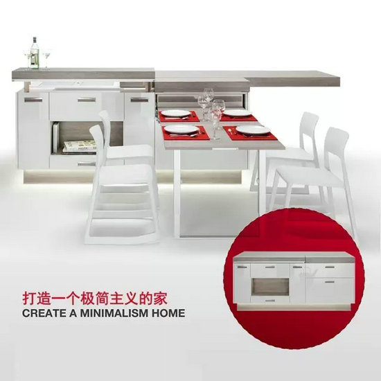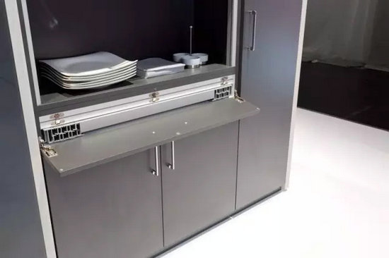 抽拉式餐臺設(shè)計大大減少空間占用面積,無需其他配件即可實(shí)現(xiàn)自支撐,用餐結(jié)束后即可將餐桌收回到柜體中,一切都那么井然有序。