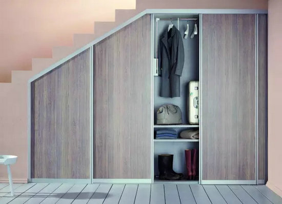 將樓梯空間設(shè)計成簡單的衣帽間和儲物柜,合理規(guī)劃空間存放家居物品,再造一個完美隱藏的儲物柜。用簡單的五金件模數(shù)化組合,成就完美舒適的居家享受。