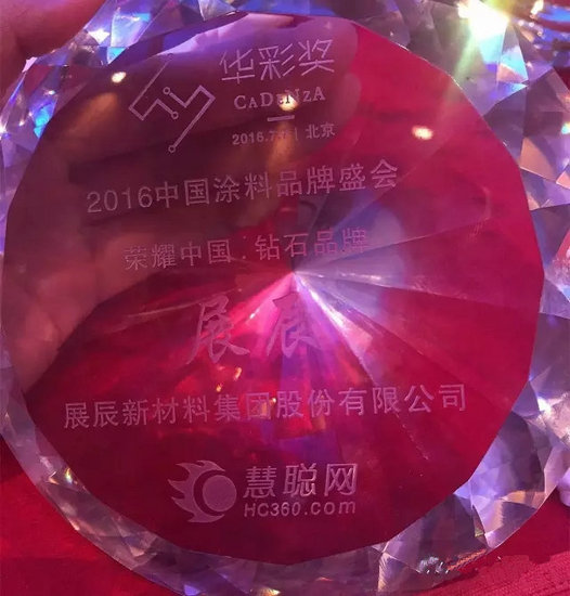 榮耀中國·鉆石品牌,展辰榮獲2016涂料品牌盛會鉆石品牌獎。作為“十佳涂料品牌”評選活動的華麗轉(zhuǎn)身,“溢彩中國”2016年中國涂料品牌盛會暨“華彩獎”(第十屆)影響力品牌評選承前啟后,將持續(xù)代表中國涂料界最高榮譽。展辰連續(xù)十年榮獲“十佳”品牌,此次獲得鉆石品牌獎,可算水到渠成,實至名歸。