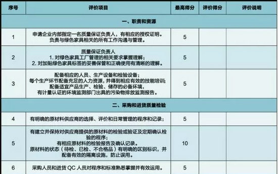 對(duì)申請(qǐng)綠色家具評(píng)價(jià)的企業(yè)進(jìn)行全面測(cè)評(píng)。測(cè)評(píng)分?jǐn)?shù)的合格線為不低于70分。