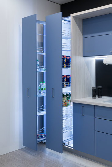海福樂LOOX照明系統(tǒng)在廚房的抽屜中安放內(nèi)置燈,讓存取更加明亮,同時也給家具的每一部分都增加了舒適感,完美補充了環(huán)境光。臺面上明亮均勻的照明效果,方便烹飪的同時更帶來了些許愉悅感。