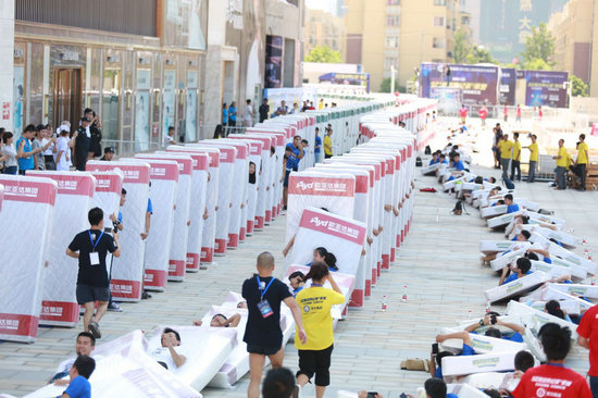 活動:2016張人體床墊多米諾骨牌挑戰(zhàn)吉尼斯世界紀錄活動