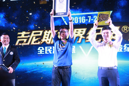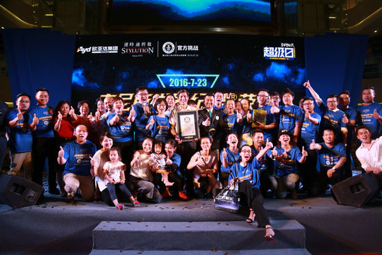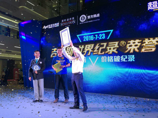 慶祝挑戰(zhàn)成功 徐建剛總裁高舉吉尼斯世界記錄認證書