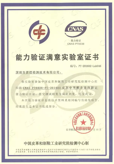 炎炎夏日,賽德檢測(cè)又迎來了檢測(cè)實(shí)力小考的一枚小紅花:由中國(guó)皮革和制鞋工業(yè)研究院檢測(cè)中心負(fù)責(zé)協(xié)調(diào)及實(shí)施的“皮革中甲醛含量的測(cè)定”能力驗(yàn)證(編號(hào):CNAS PT0038-PT-201602),全國(guó)共有12個(gè)省、直轄市的58家實(shí)驗(yàn)室參加,84.5%的實(shí)驗(yàn)室獲得滿意結(jié)果,賽德檢測(cè)為其中之一。