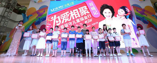從活動(dòng)啟動(dòng)以來,經(jīng)過半個(gè)月的精心選拔,在深圳、合肥、南昌、蘇州、石家莊每個(gè)城市選拔8組家庭與我們共同前往江西瑞金關(guān)愛留守兒童。中國文學(xué)藝術(shù)基金會(huì)校園文化專項(xiàng)基金常務(wù)主任尚主任上臺(tái)與小鹿姐姐現(xiàn)場(chǎng)為我們這些可愛的小天使頒發(fā)愛心小天使勛章。小朋友們和小鹿姐姐親密接觸、互動(dòng)游戲。