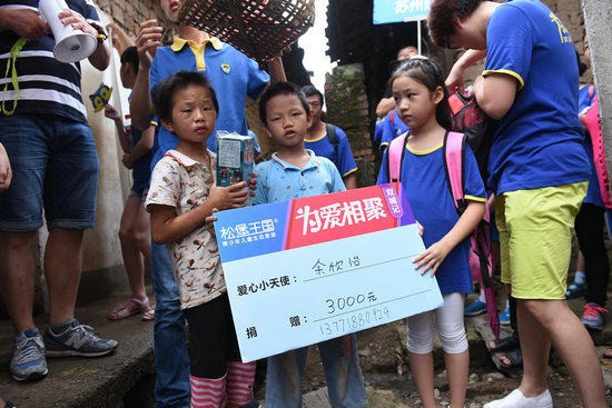 鐘平峰小朋友,他的媽媽和姐姐都是精神病患者,爸爸一個(gè)人外出打工賺取一點(diǎn)微薄的勞工費(fèi),家里只靠70多歲的奶奶照顧,家里經(jīng)濟(jì)條件真的非常困難,松堡王國愛心團(tuán)(深圳、南昌、蘇州)除了帶去零食、學(xué)習(xí)用品之外,還總共為鐘平峰小朋友愛募捐了13000元善款!