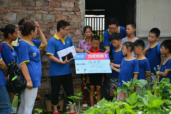 鐘桂清小朋友,沒有爸爸的照顧,媽媽改嫁,弟弟腦癱,全家就靠一個(gè)70多歲奶奶照顧,三個(gè)人擠在一間破爛不堪的泥房里面,因?yàn)閮蓚€(gè)小孩都沒有戶口,無法享受低?;蛘叩艿芪懈@赫疹櫋5弥闆r后松堡王國南昌朱總立即通過微信募捐得6500元善款,松堡王國營銷總監(jiān)汪總再三交代村長解決落實(shí)孩子戶口問題,以便解決低保困難!