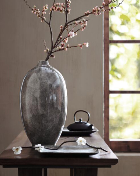 珍珠魚皮紋花瓶表面的紋理,宛如珍珠一般星星點點,純凈皎潔,在灰色釉面掩映下,內(nèi)斂含蓄,給人平和之感。
