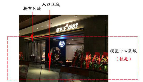 在一片賣場中,店鋪入口與環(huán)境的差異性,會構成引導性照明,吸引消費者關注并進入店鋪