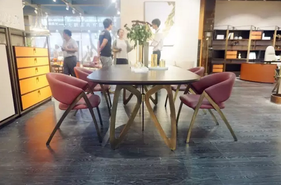 米德·今至展位,十大原創(chuàng)生活空間設計,四款客廳家具、四款臥室家具、五款餐廳家具以及三款書房家具配套設計,將金屬、大理石、木作等多種材質(zhì)融入現(xiàn)代流行時尚,以融匯中西的設計理念,向我們展現(xiàn)了一場美的盛宴。
