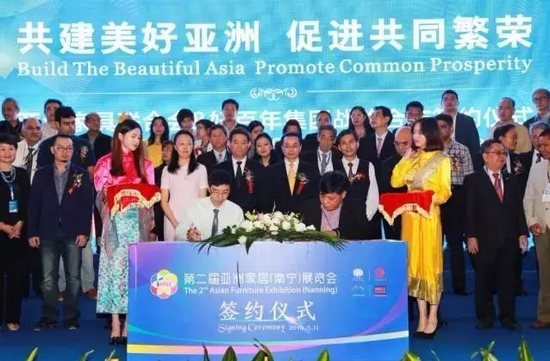 開幕儀式上,好百年集團先后與亞洲家具聯(lián)合會、泰國家具協(xié)會、馬來西亞家具總會、印度尼西亞家具與工藝品行業(yè)協(xié)會簽署雙邊戰(zhàn)略合作協(xié)議,保持著政治、行業(yè)、企業(yè)的優(yōu)化組合和亞洲家具行業(yè)間的緊密聯(lián)系,這標志著好百年集團尋求“一帶一路”政策下全球“多邊發(fā)展,共榮共贏”戰(zhàn)略落到實處。同時,亞洲家居產(chǎn)業(yè)(南寧)合作會議也同期召開,研究探索利好政治條件下亞洲家具行業(yè)共同繁榮發(fā)展之路。