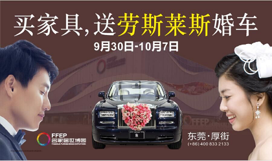 買家具送勞斯萊斯、送婚紗照、送婚房、送蜜月度假……盡在中國家具展貿(mào)之都東莞厚街名家居世博園“金秋婚禮季”。