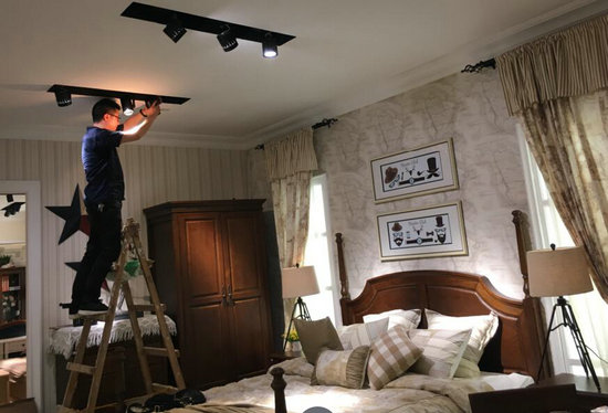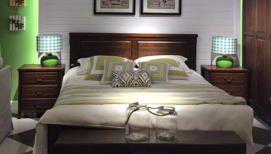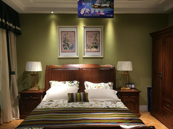 (此為賴氏品牌實(shí)木“北美一號(hào)”系列美式套房實(shí)景,由神話定制照明提供)