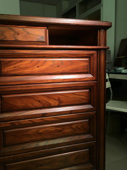 這是油漆之后的不同的效果,從這個(gè)過程可以看到,白臘木這種珍貴的木材是如何從山林里邊被伐木工拖出來然后經(jīng)過加工變成了一塊預(yù)備做家具的優(yōu)質(zhì)板材。所以家具是木材“生命力”的延續(xù),我們有理由讓它更精彩,更有價(jià)值。