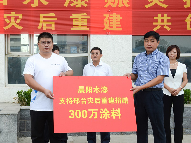 近幾年,晨陽(yáng)水漆不僅累計(jì)捐資超過(guò)3000萬(wàn)元,在災(zāi)區(qū)重建、扶貧幫困、支持“美麗鄉(xiāng)村”建設(shè)和捐資助教事業(yè)等工作上表現(xiàn)出不一般的社會(huì)關(guān)系。而就在這僅僅一個(gè)月來(lái),晨陽(yáng)水漆就舉辦了兩次公益活動(dòng)。8月29日,晨陽(yáng)水漆為7•19邢臺(tái)水災(zāi)災(zāi)區(qū)重建捐贈(zèng)了價(jià)值300萬(wàn)元的水漆。9月3日,晨陽(yáng)水漆更是組織員工參加中青基金會(huì)“挑戰(zhàn)8小時(shí)”大型公益活動(dòng),為河北淶水縣的1000名農(nóng)村貧困家庭孩子募捐愛(ài)心善款。