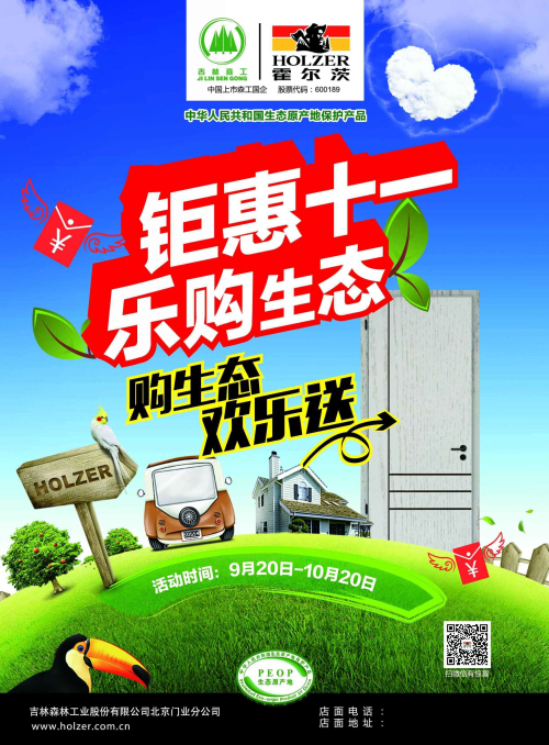 對此,霍爾茨生態(tài)體系木門再送福利,啟動“鉅惠十一 樂購生態(tài)”十一大型活動,為消費者們帶來真正健康、生態(tài)的家居生活。