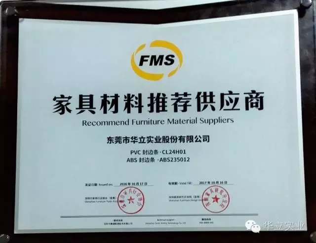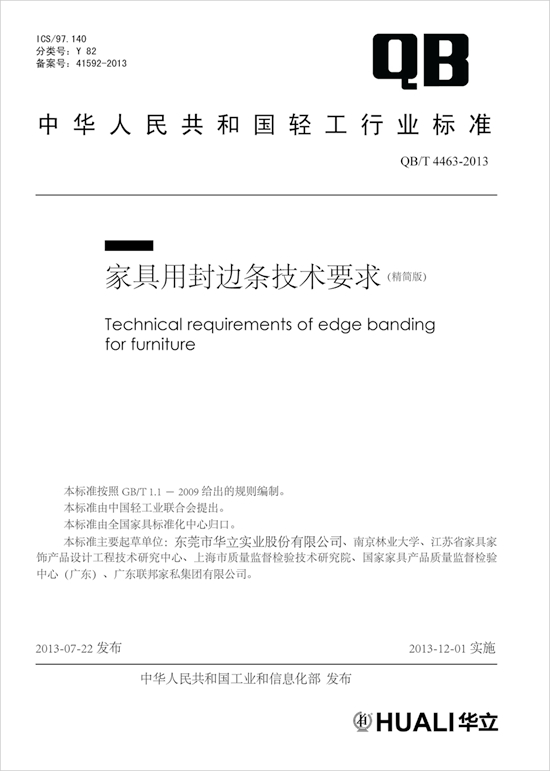 華立主導制定的《家具用封邊條技術要求》