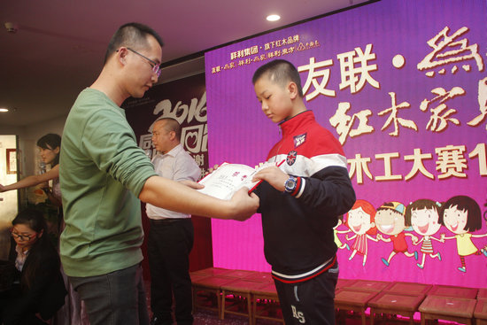 19日下午,創(chuàng)意12月——友聯(lián)為家少兒紅木木工大賽歡樂(lè)開(kāi)展,來(lái)自深圳及周邊城市的幾十組家庭參加了比賽。據(jù)悉,此賽事由龍華新區(qū)文產(chǎn)辦、文化創(chuàng)意十二月組委會(huì)主辦,深圳紅木文化藝術(shù)協(xié)會(huì)、香港祥利集團(tuán)、深圳紅木家具博物館協(xié)辦,旨在培養(yǎng)少兒對(duì)中國(guó)傳統(tǒng)家具的熱愛(ài)、提升小朋友的動(dòng)手能力,增進(jìn)孩子與家長(zhǎng)的互動(dòng)。