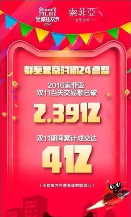 根據(jù)天貓官方數(shù)據(jù)統(tǒng)計,索菲亞雙十一期間總成交額突破4億大關,勇奪全屋定制行業(yè)頭把交椅,相比去年實現(xiàn)近46%增長,勢頭強勁。在雙十一的當天中午,第10000套經(jīng)典的799/m2衣柜特價套餐被客戶拍下,成為當之無愧的爆款。然而,正當業(yè)界嘗試挖掘定制家具如何做電商的時候,索菲亞卻放言“我們的電商從不賣貨”,是在玩劇情大反轉?“不賣貨的電商”賣什么?