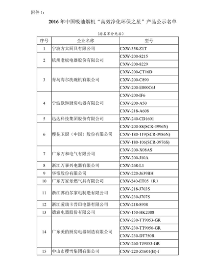 11月29日,中國(guó)五金制品協(xié)會(huì)正式公布了2016年家用吸油煙機(jī)及集成灶“高效凈化環(huán)保之星”產(chǎn)品名單,櫻雪廚電憑借直流變頻吸油煙機(jī)CXW-220-Z1601(B)-J在評(píng)比中榮獲“高效凈化環(huán)保之星”稱(chēng)號(hào)。