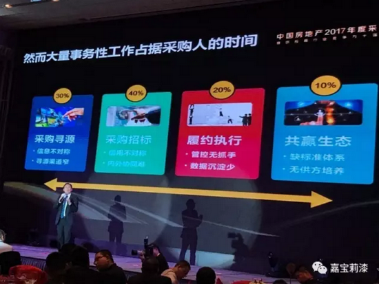 經(jīng)過層層角逐和嚴格評選,嘉寶莉工程漆一路過關(guān)斬將,以排名第三的優(yōu)異成績斬獲“建筑涂料類十強供應(yīng)商”桂冠。工程漆戰(zhàn)略集采總經(jīng)理郭鴻義先生應(yīng)邀參會并登臺領(lǐng)獎。
