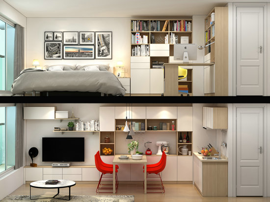 除了住宅收納部分的前置式設(shè)計(jì),最新的研究成果包括電器與家具一體化解決方案。