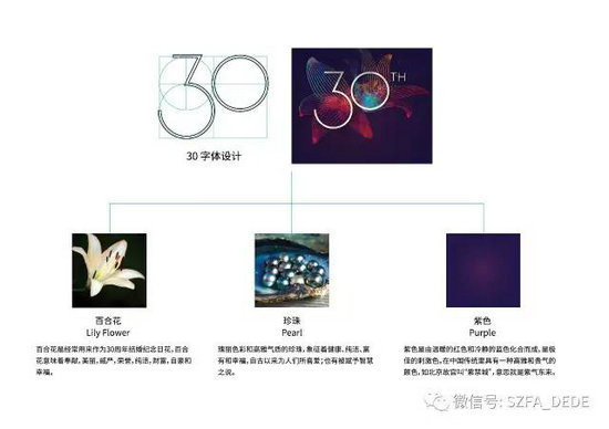 左右家私作為中國家具行業(yè)的領(lǐng)導(dǎo)者,其品牌具有高貴又不失親切的氣質(zhì)。DEDE國際設(shè)計團(tuán)隊(duì)從左右家私的品牌基因出發(fā),結(jié)合公司為30周年慶典設(shè)定的活動意義,為本次活動專門設(shè)計了象征30年幸福的獨(dú)一無二的“百合花”,結(jié)合智慧靈氣的“珍珠彩貝”效果以及高貴典雅的“紫色”基調(diào),造就了這次30周年慶典的主題畫面形象。