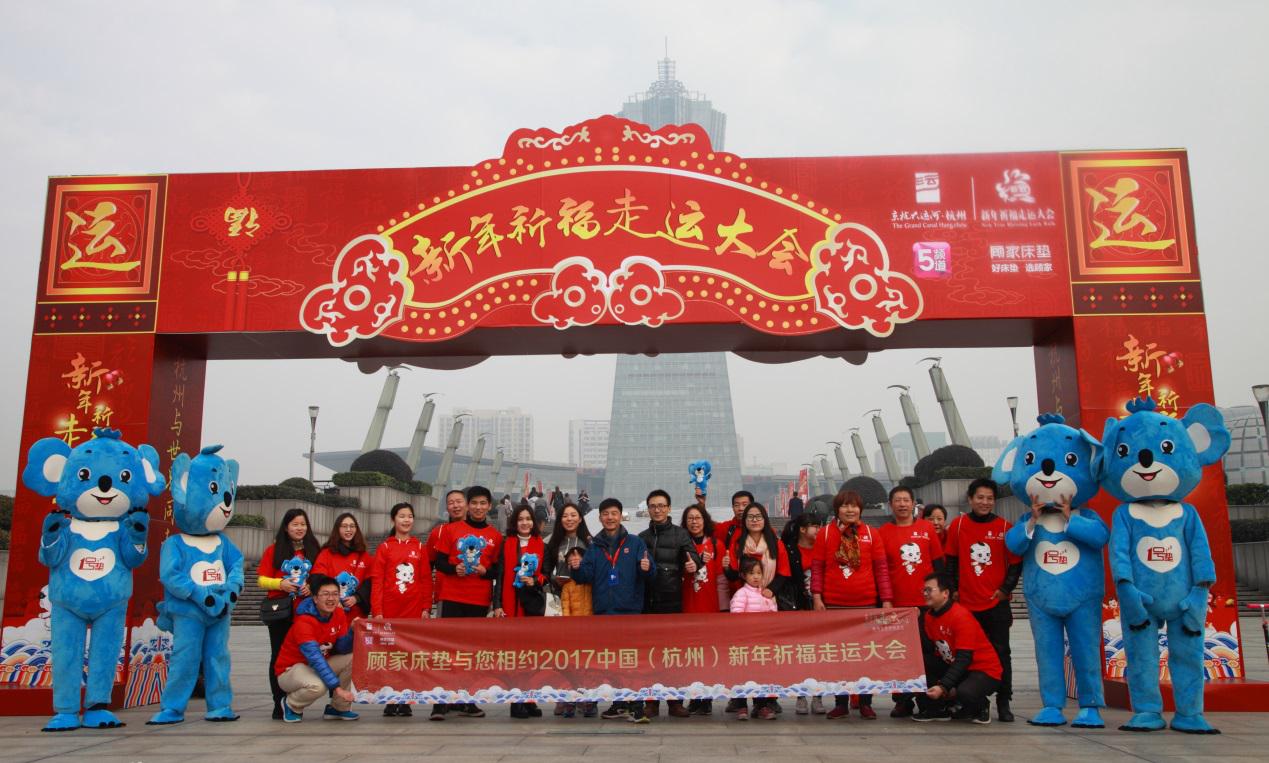 2017年1月1日上午,新年祈福走運大會在杭州運河畔如火如荼進行,包括杭州市政領(lǐng)導(dǎo)、國內(nèi)外友人、杭州市民、顧家床墊客戶代表在內(nèi)的千余人方陣轟動全城!
