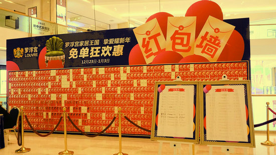 免單狂歡惠活動(dòng)期間,羅浮宮設(shè)置了一面長(zhǎng)達(dá)7.5米的紅包墻,掛滿了足足750個(gè)現(xiàn)金紅包,最高金額達(dá)4999元,為市民過(guò)新年博個(gè)“好彩頭”!元旦當(dāng)天,來(lái)自長(zhǎng)沙的安先生就抽中了一封2000元的紅包,“這是我新年第一個(gè)紅包,很開(kāi)心!”,他興奮地表示。