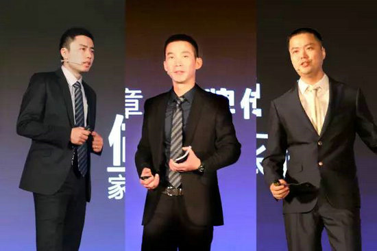 ▲家具漆演講團(tuán)隊(duì)——產(chǎn)品部總監(jiān)江濤(左)、市場(chǎng)部總經(jīng)理劉軍山(中)、培訓(xùn)部總經(jīng)理郭志偉(右)