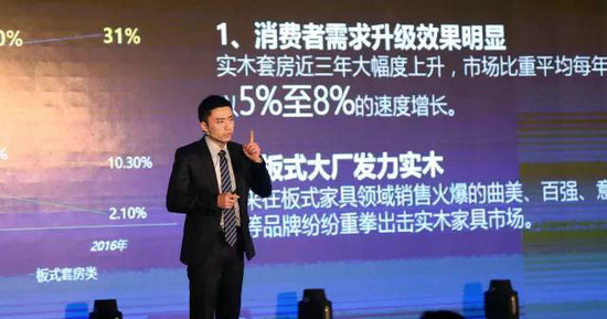 ▲產(chǎn)品部總監(jiān)江濤發(fā)表2017家具漆珍金高端及凈味升級(jí)系列新品專題報(bào)告