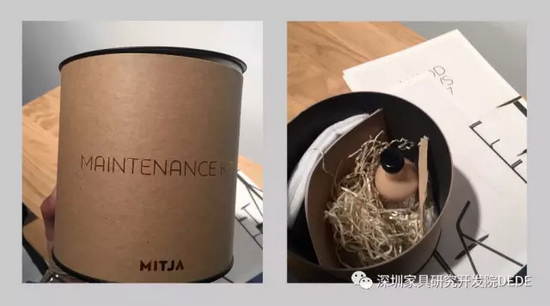 再來看看科隆展參展商送給賓客的伴手禮,如MITJA的家具護理液,外包裝本身已經(jīng)很高大上了;再如RIVA1920送出的是原木邊角料做成的木碗,如果沒記錯兩年前送的是邊角料做的一顆心;又如某品牌宣傳單頁,像明信片一樣整整齊齊地放置在開放式展架上。這些伴手禮無不樸素大方、簡潔實用、契合品牌身份地位。