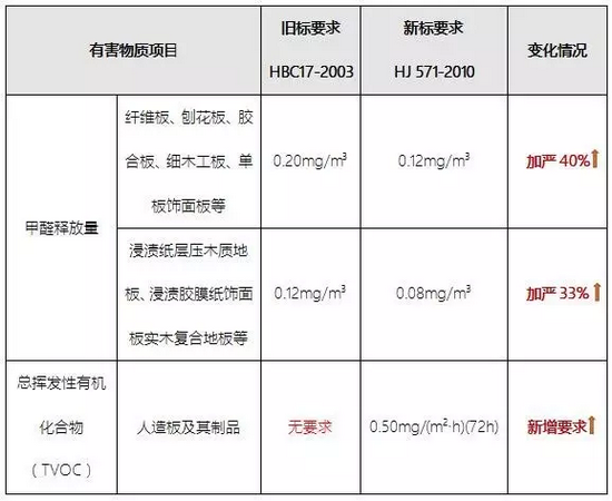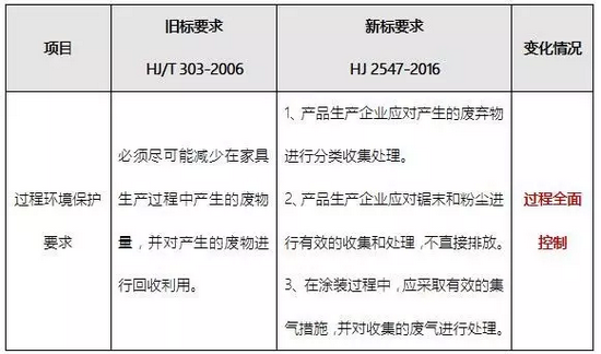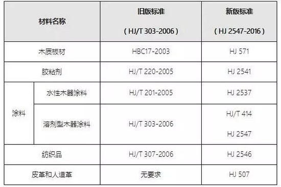 HJ 2547-2016與此前執(zhí)行的HJ/T 303-2006標(biāo)準(zhǔn)相比,除了提高對木質(zhì)板材類、水基型膠粘劑、溶劑型膠粘劑、水性木器涂料、溶劑型木器涂料、紡織品、皮革和人造革等項(xiàng)目的技術(shù)要求,更突出對家具材料供應(yīng)商的有效管理、產(chǎn)品生產(chǎn)過程的環(huán)境保護(hù)、產(chǎn)品的環(huán)境保護(hù)、產(chǎn)品包裝的環(huán)境保護(hù)等環(huán)節(jié)的高要求。