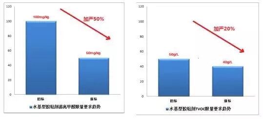 類別依舊分為丙烯類、縮甲醛類、聚醋酸乙烯酯類、橡膠類、聚氨酯類、其他類膠粘劑,但限量要求進(jìn)行如下的提升: