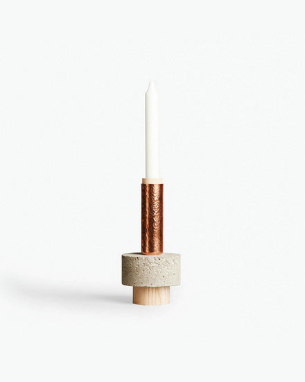 New Works的設(shè)計師David Taylor將水泥、木頭、鋁和銅這些材料,全部結(jié)合在這款燭臺上,使它不僅僅是一只燭臺,而更像是一件微縮的藝術(shù)裝置。他對于不同材料的大膽試驗,在設(shè)計品上不僅注重實用度,在視覺上充滿新穎與創(chuàng)意,也造就了設(shè)計與藝術(shù)的終極碰撞。