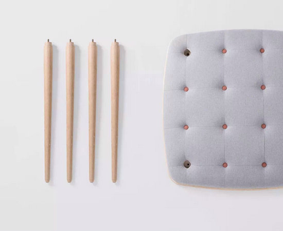 它有趣又好玩。桌面底部設(shè)置了布藝軟包,粉晶色的紐扣鑲嵌在淺灰色的軟包中,看上去就像一塊方形大餅干。桌腿向外傾斜,桌底“玩樂區(qū)”比普通桌底更寬敞。