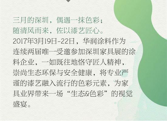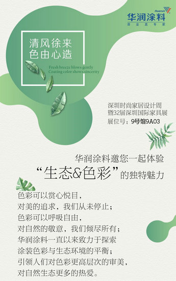 華潤(rùn)涂料“生態(tài)&色彩”大潮即將駕臨深圳時(shí)尚家居設(shè)計(jì)周