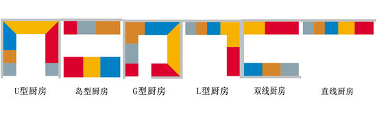U型廚房、島型廚房、G型廚房、L型廚房、雙線廚房、單線廚房,不論廚房大小和布局,只要按照一定的順序?qū)N房功能精準分為食品儲備區(qū)、餐具存放區(qū)、清洗區(qū)、準備區(qū)、烹飪/烘烤區(qū),讓廚房操作行云流水。