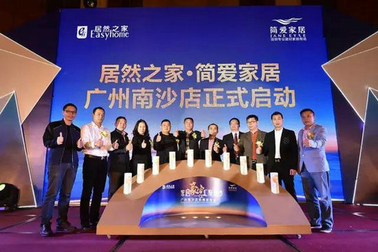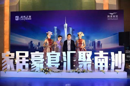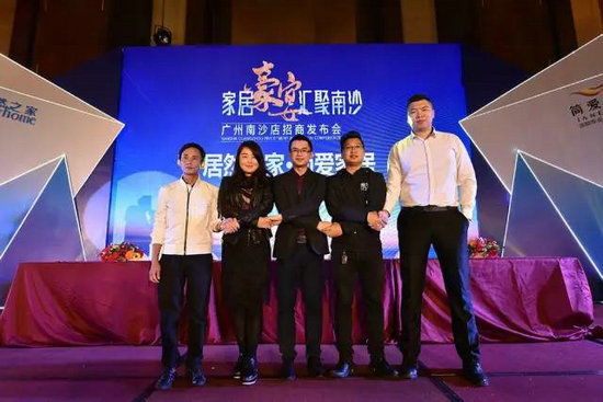 居然之間、簡愛家居強強聯(lián)合,開啟廣州南沙嶄新的家居時代。當天,眾多重量級嘉賓上臺共同啟動廣州南沙店的全球招商。