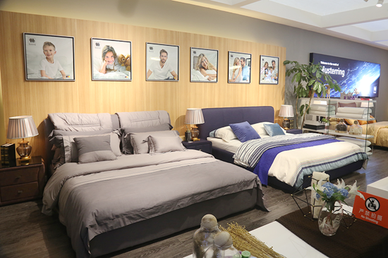 本次展位上,是德國美得麗與美國蕾絲床墊系列直播秀。